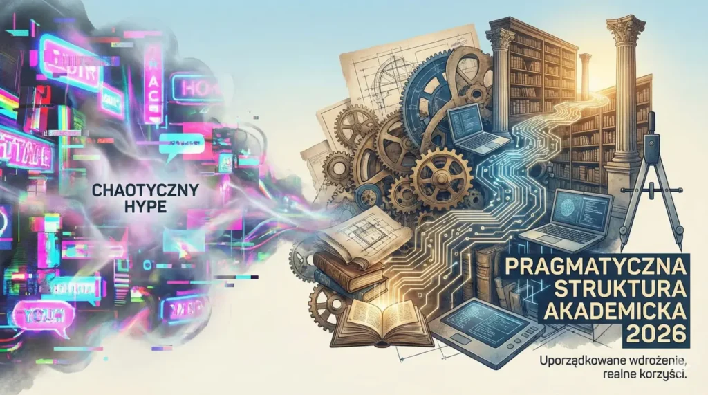 Rok 2026 stanowi punkt zwrotny w ewolucji sztucznej inteligencji, wyznaczając przejście od ery fascynacji i „hype’u” wokół wielkoskalowych modeli językowych do etapu pragmatycznych, ukierunkowanych wdrożeń. Czas eksperymentów dobiega końca; branża technologiczna zaczyna podchodzić do AI z większą dojrzałością, koncentrując się na realnej użyteczności, integracji z istniejącymi procesami i badaniu nowych, bardziej efektywnych architektur. Dla liderów akademickich, naukowców i studentów ta zmiana paradygmatu ma fundamentalne znaczenie. Dyskusje nieuchronnie przesuwają się od teoretycznych możliwości do operacyjnej rzeczywistości: jak AI wpłynie na alokację budżetów, transformację kadr, efektywność operacyjną, procesy badawcze i codzienne metody nauczania. Zrozumienie strategicznych implikacji tych zmian staje się kluczowe dla zachowania konkurencyjności i adekwatności instytucji szkolnictwa wyższego w nadchodzącej dekadzie.