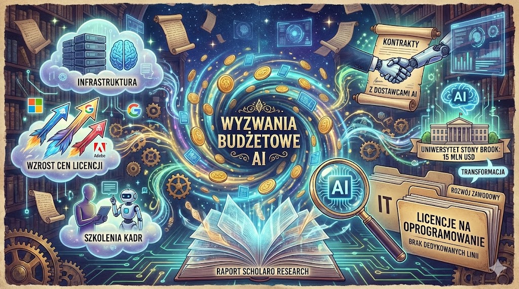 Wyzwania budżetowe związane z wdrażaniem AI stają się coraz bardziej palące. Jak wskazuje raport Scholaro Research, większość uczelni nadal nie stworzyła dedykowanych linii budżetowych na sztuczną inteligencję. Koszty te są absorbowane przez istniejące kategorie, takie jak IT, licencje na oprogramowanie czy rozwój zawodowy, co znacząco utrudnia śledzenie rzeczywistych wydatków i uniemożliwia strategiczne planowanie.
